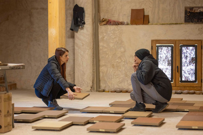 creación capta la diversidad y riqueza del lugar. Las experiencias de sus habitantes y los colores del territorio configuran una pieza pictórica compuesta de varios módulos de carácter instalativo. Una especie de sistema visual complejo donde las personas y el entorno se moldean mutuamente a través de la experiencia.